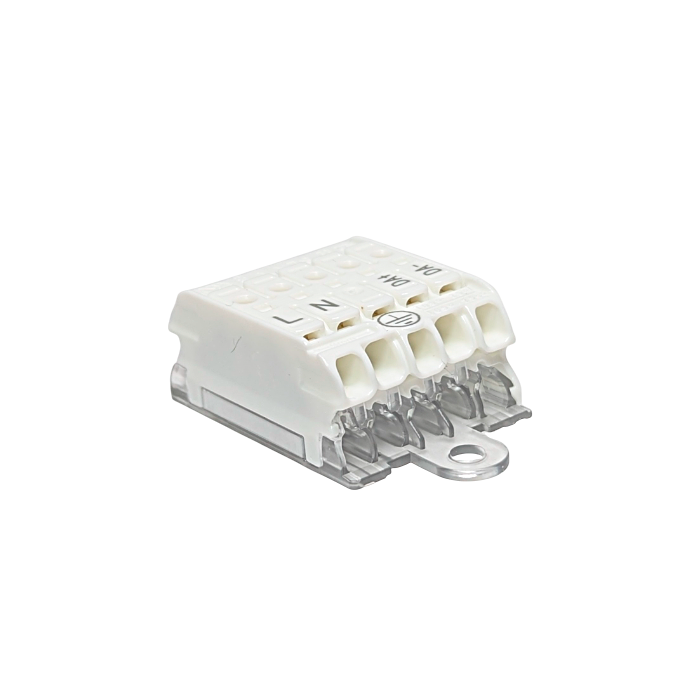 Leuchtenklemme 5-polig mit Erdungsbügel (L N ERDE DA+ DA-)